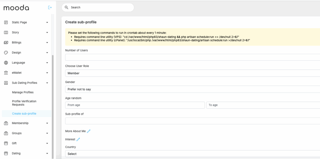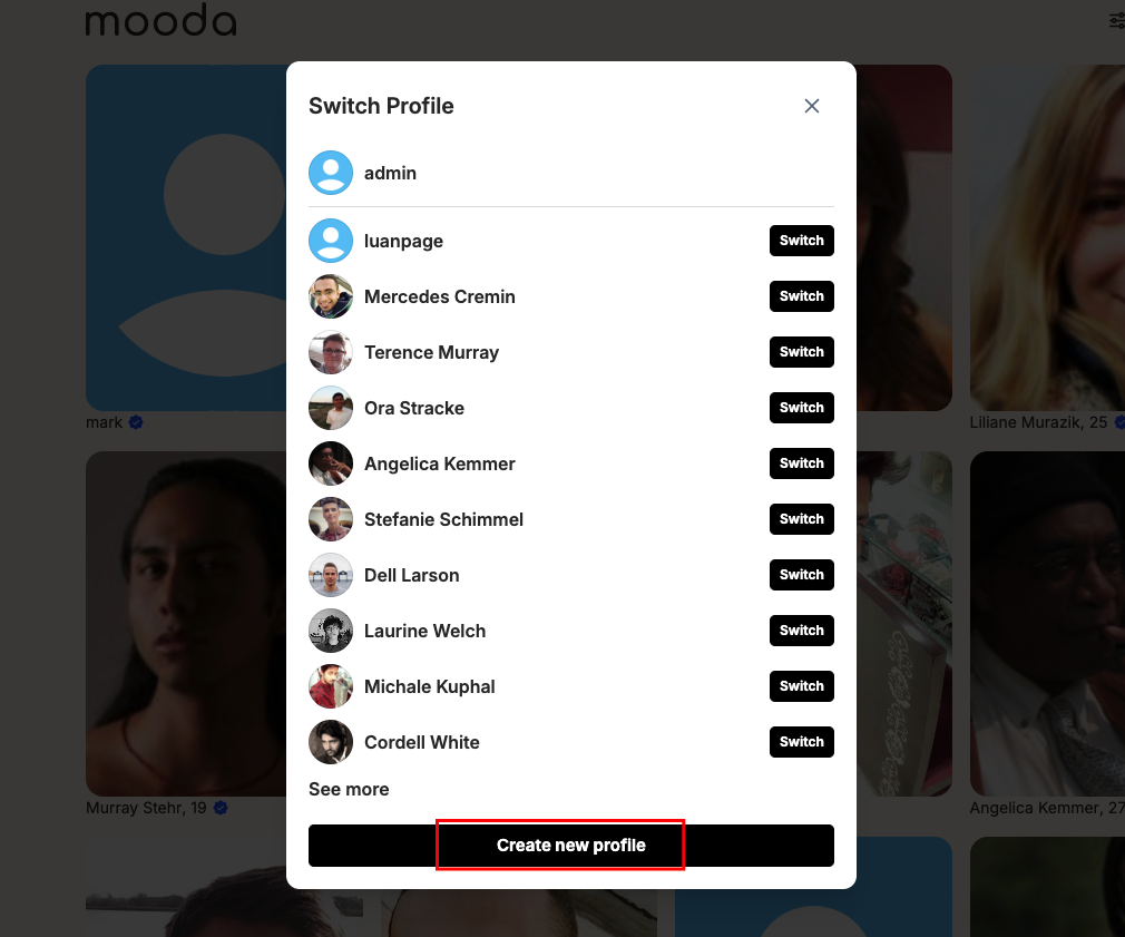 mooDating allows administrators and moderators to create and manage sub-profiles—additional profiles that can be used to interact with users and help boost early-stage engagement on the platform. With the ability to seamlessly switch between accounts, admins can simulate activity, respond to users, and ensure a more dynamic and engaging experience, especially during the initial growth phase.