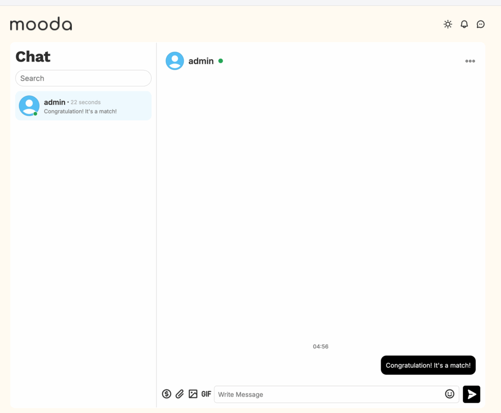 Click on a notification, system will open the profile page for you to like back if you want. If you LIKED back -> it’s a matched and system auto create a message for you to start chatting.